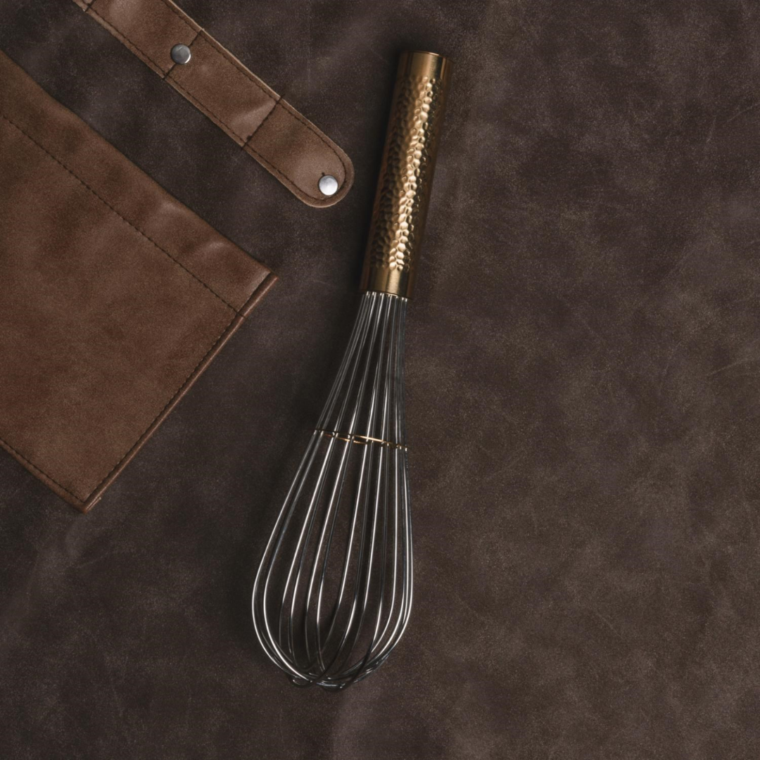 Dieses Bundle enthält unseren leckeren Messing-Schneebesen aus der FROST- Serie. Sowie ein Set Messlöffel ebenfalls aus Messing.