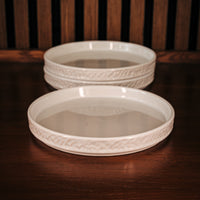Den let forhøjede kant indrammer indholdet og giver et afbalanceret visuelt udtryk. Takket være den robuste konstruktion tåler tallerkenen både opvaskemaskine og daglig brug.