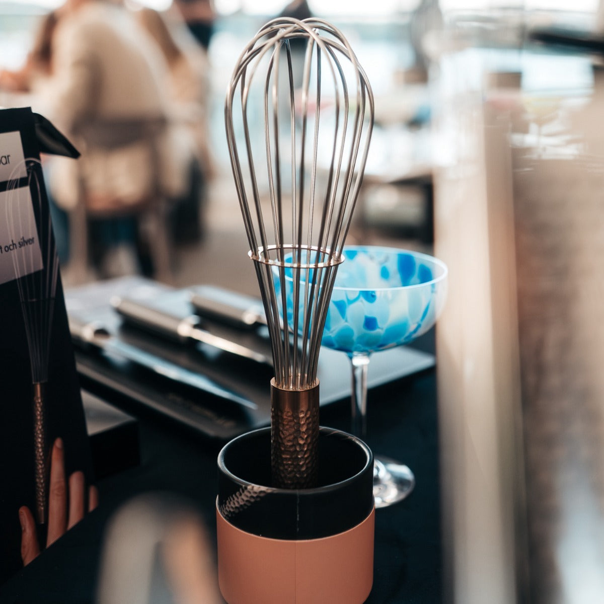 Nogle tænker måske, det er bare et piskeris. Men ikke os. Dette er en smuk historie, som vi har arbejdet længe på at få frem. Resultatet er en ballonpiskeris med et godt greb, og selvom den er lavet helt i stål, er vægten let, så man ikke bliver træt i armen.