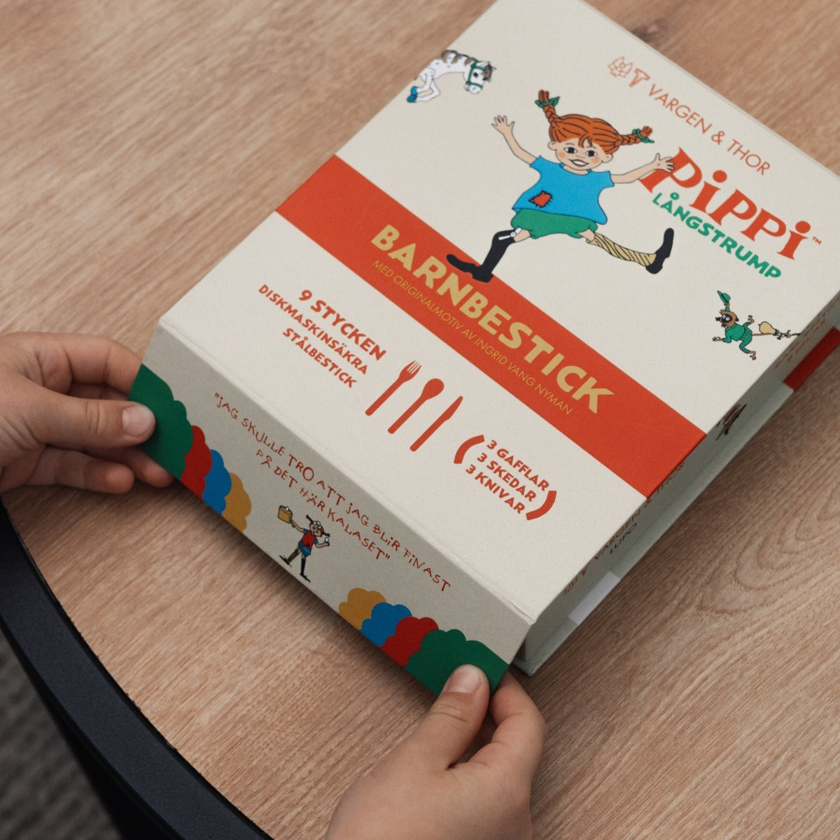 Pippi med sine røde fletninger blev introduceret til verden allerede i 1945 og har været en favorit lige siden. Astrids mange fortællinger vil følge os langt ind i fremtiden. Her er et bestiksæt, fremstillet i samme ånd, der også vil være med - i flere generationer.