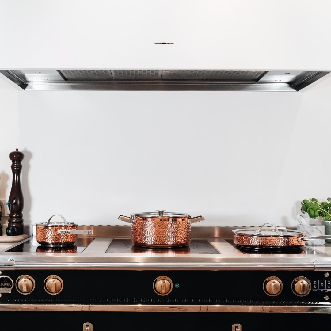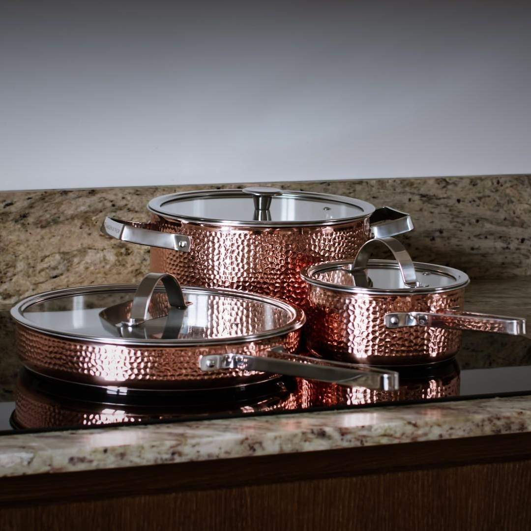 Kobber er et materiale, der naturligt oxiderer. Derfor er det almindeligt, at pletter opstår; brug kobberpuds, hvis du vil genoprette den oprindelige glans. Hæld ikke koldt vand på, når panden er varm. Husk at opvarme forsigtigt og gradvist for at finde den rette stegetemperatur. Brug kun redskaber i træ eller plast for ikke at ridse den rustfri overflade.