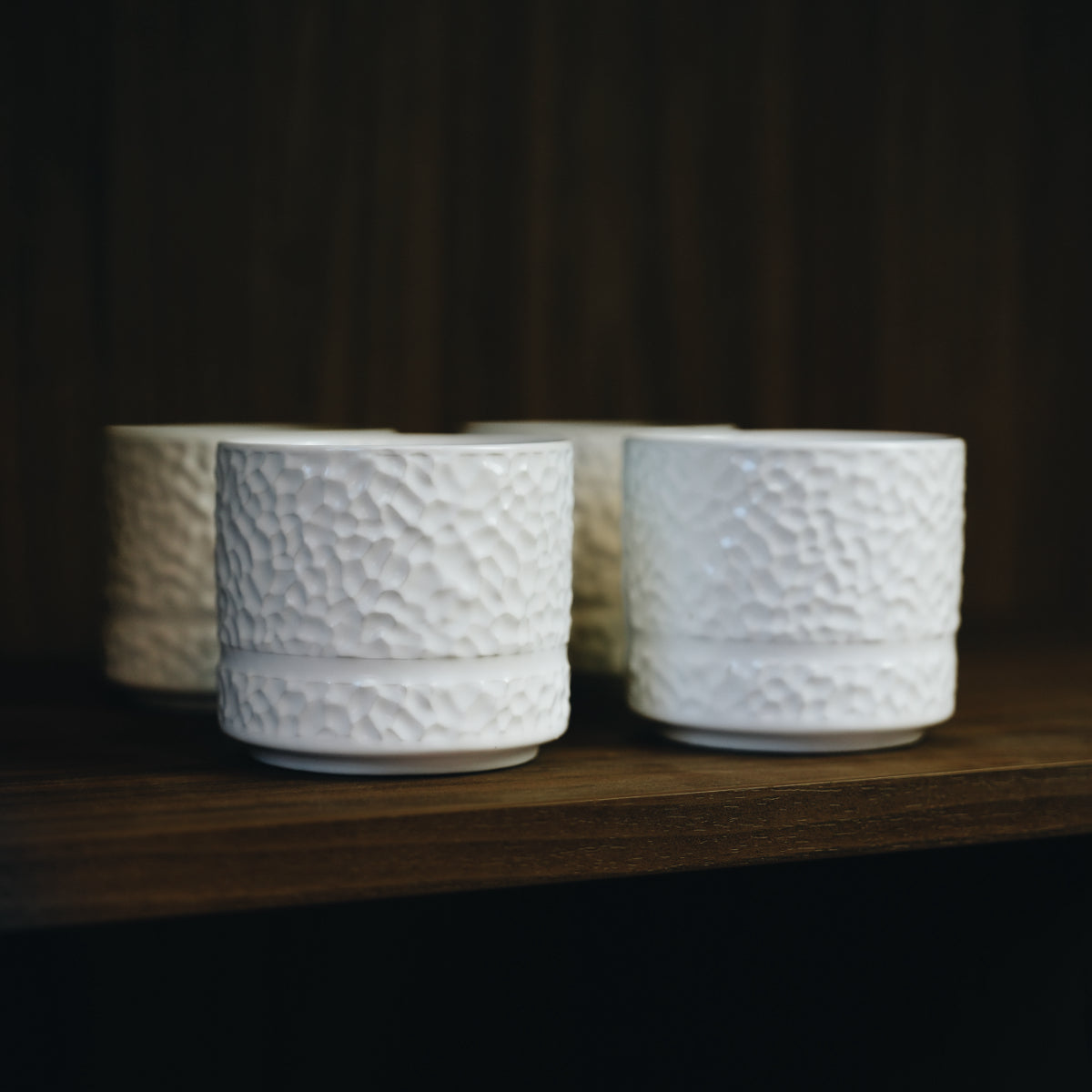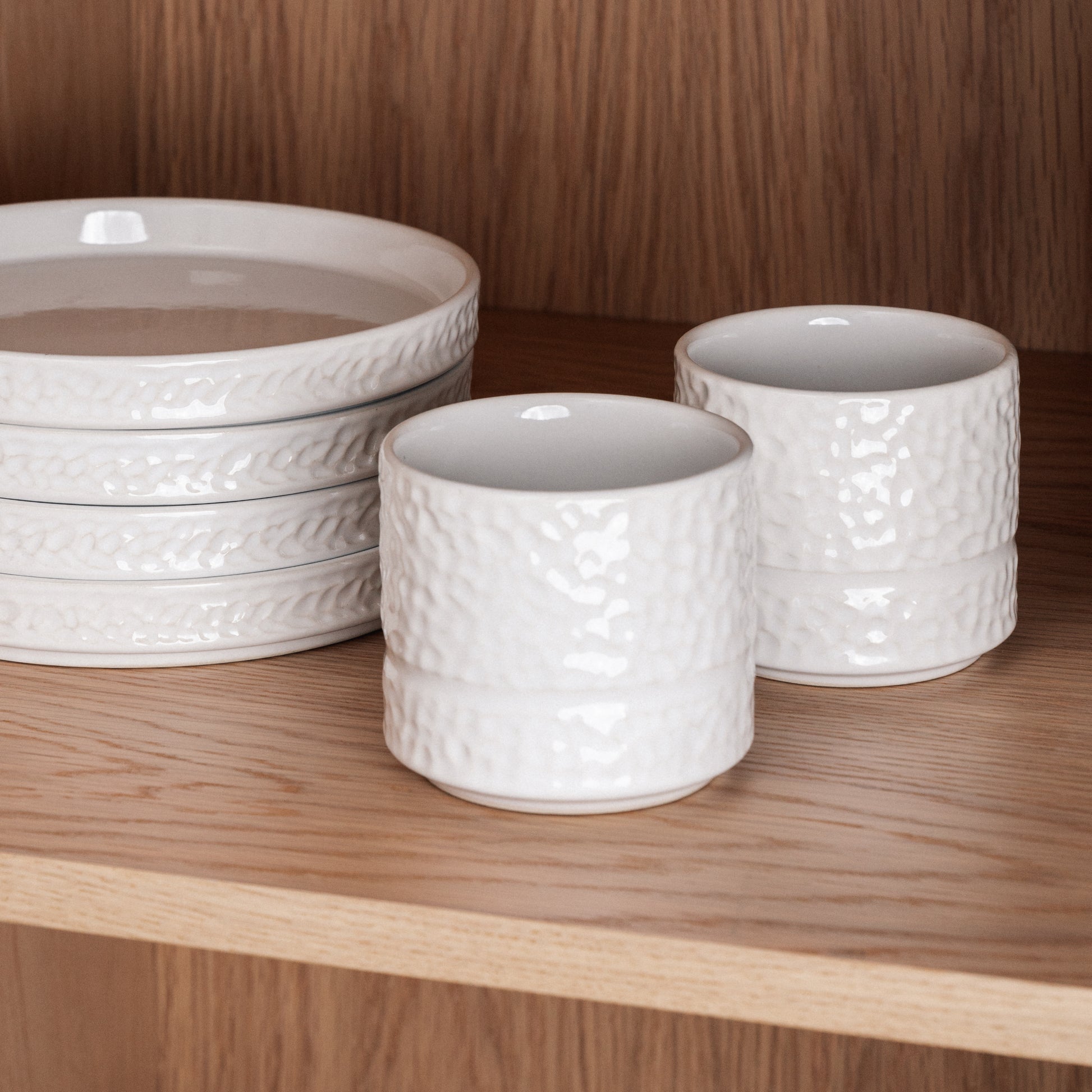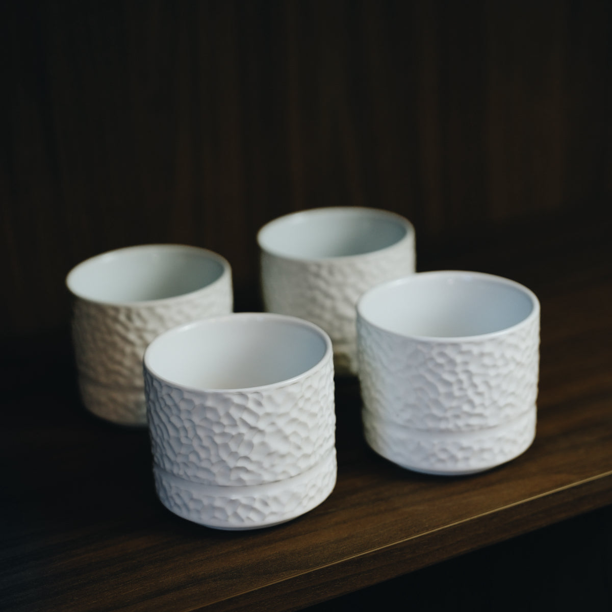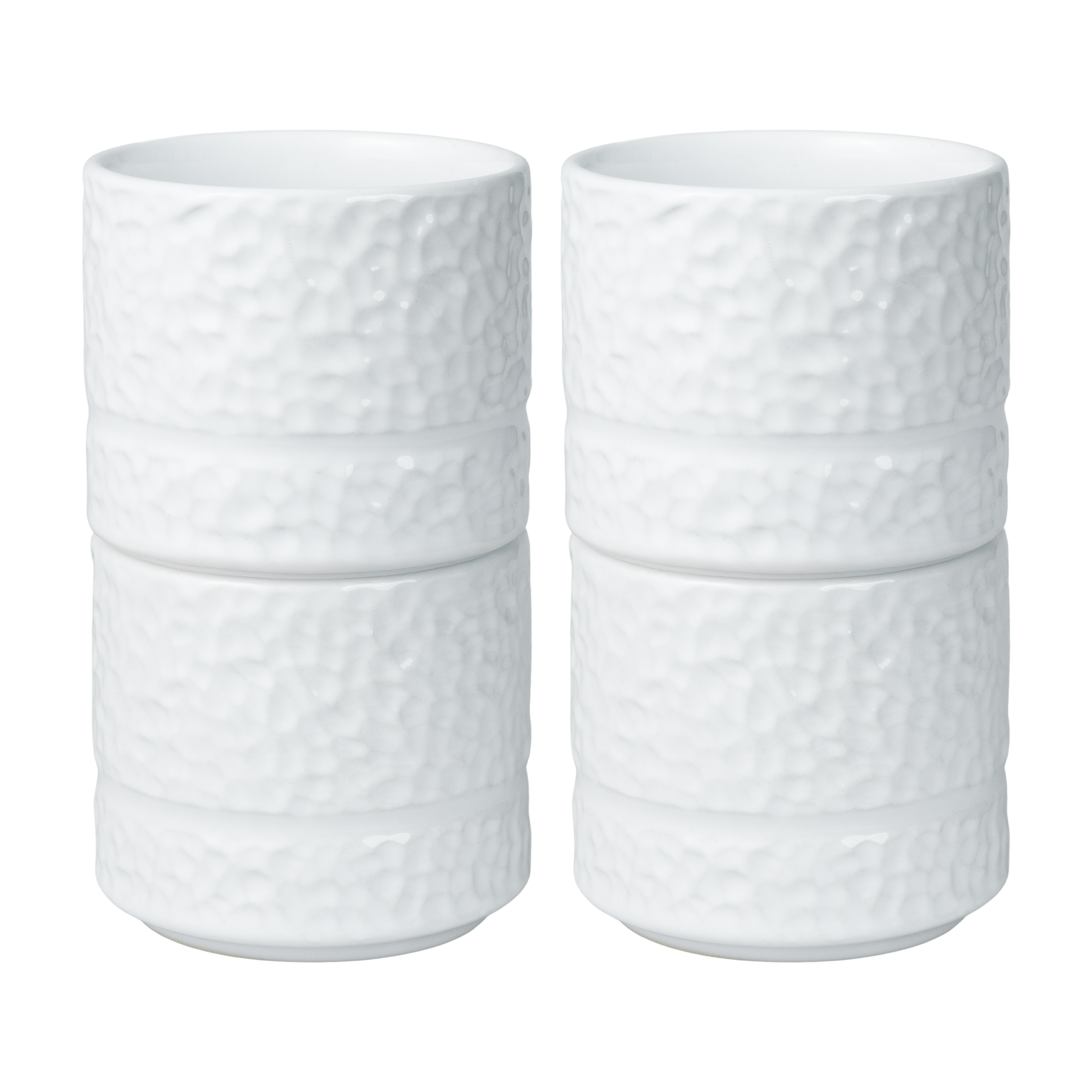 Krusene er fremstillet i porcelæn, der sikrer lang holdbarhed og en solid, eksklusiv følelse. Den hamrede overflade giver et naturligt greb, mens den ergonomiske form gør kruset behageligt at holde. Perfekt til varme drikke – men lige så velegnet til kolde. Og hvorfor ikke servere en cremet forretssuppe i det?