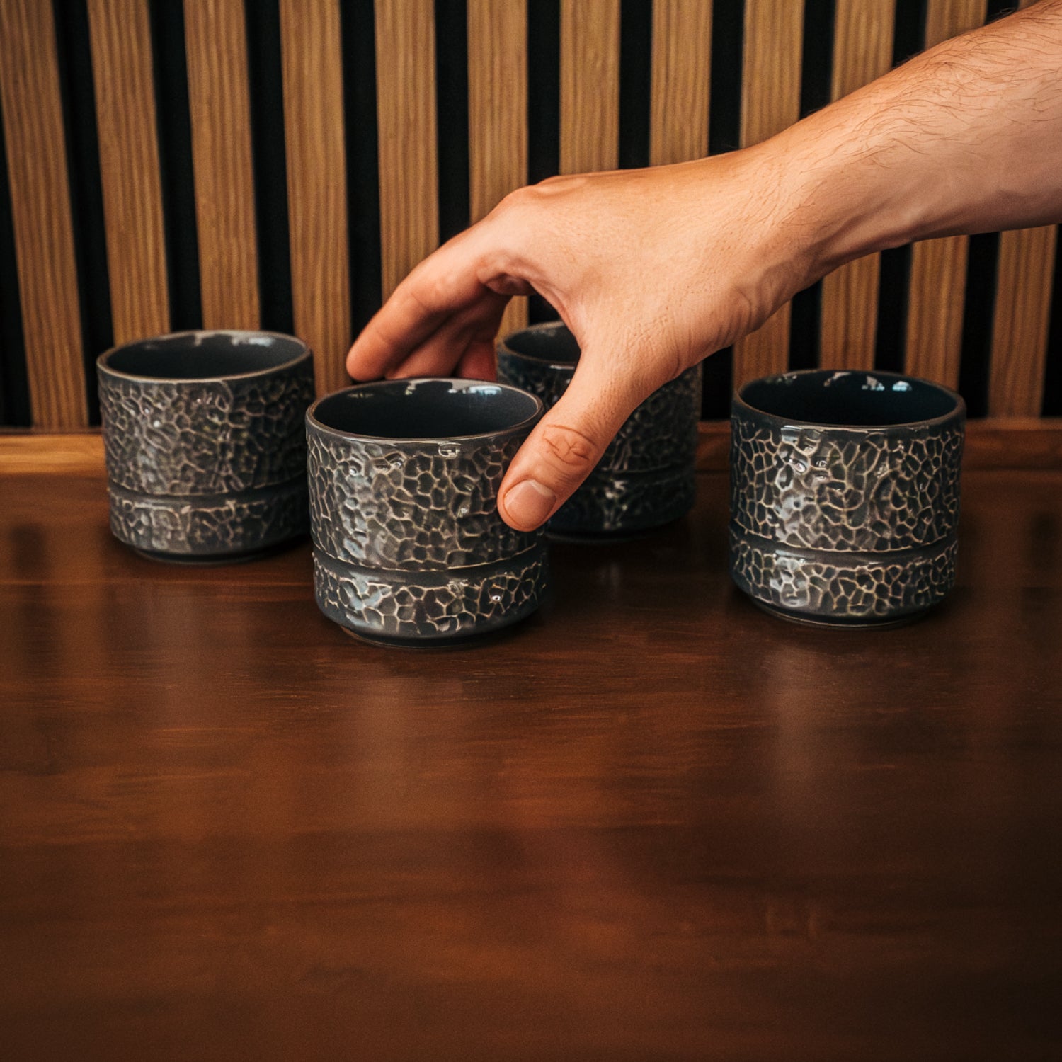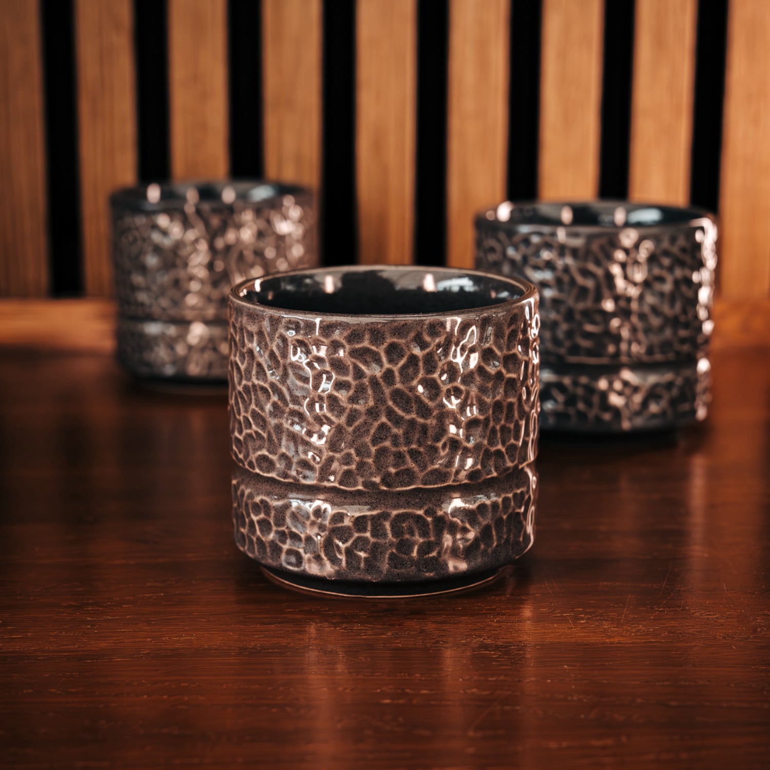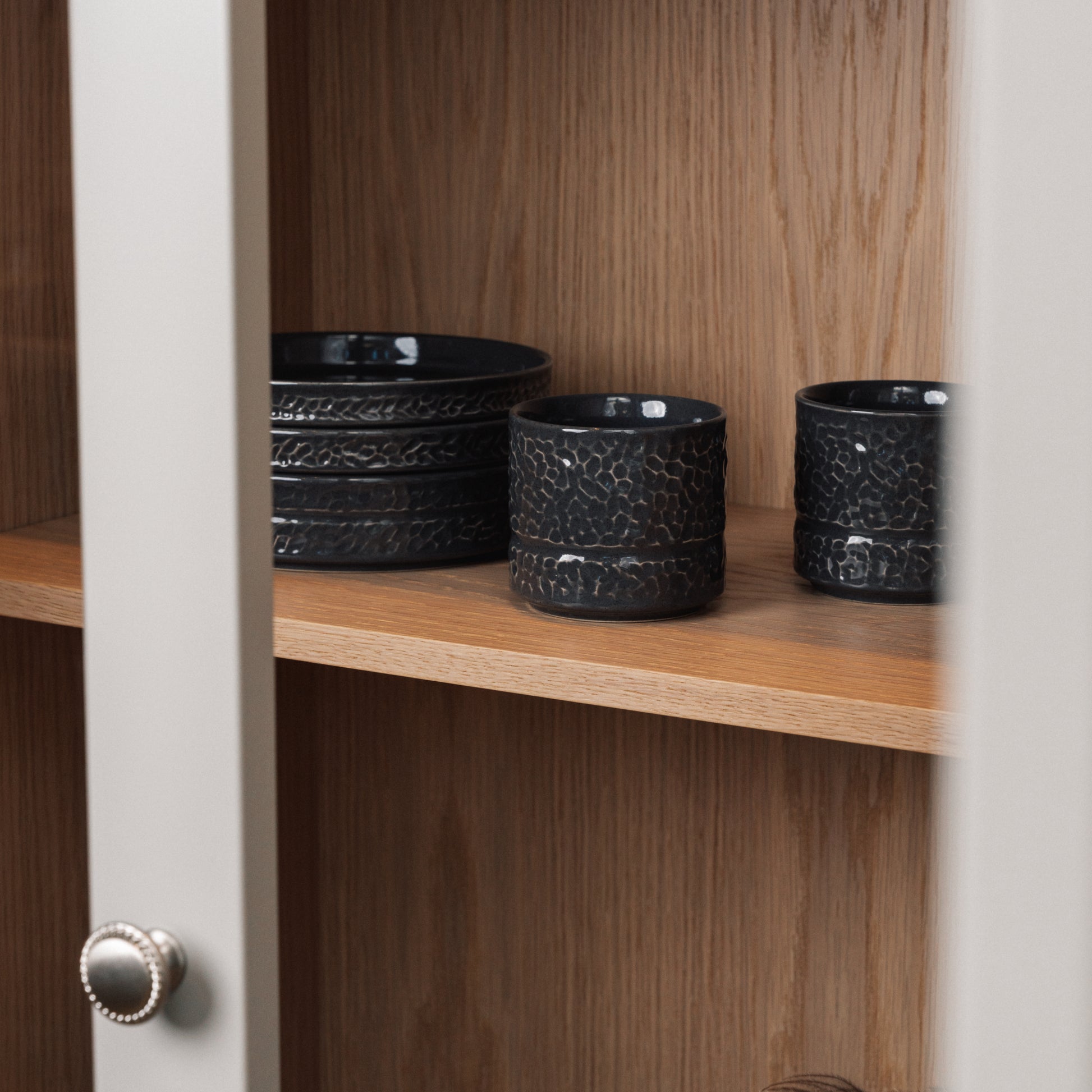 Krusene er fremstillet i porcelæn, der sikrer lang holdbarhed og en solid, eksklusiv følelse. Den hamrede overflade giver et naturligt greb, mens den ergonomiske form gør kruset behageligt at holde. Perfekt til varme drikke – men lige så velegnet til kolde. Og hvorfor ikke servere en cremet forretssuppe i det?