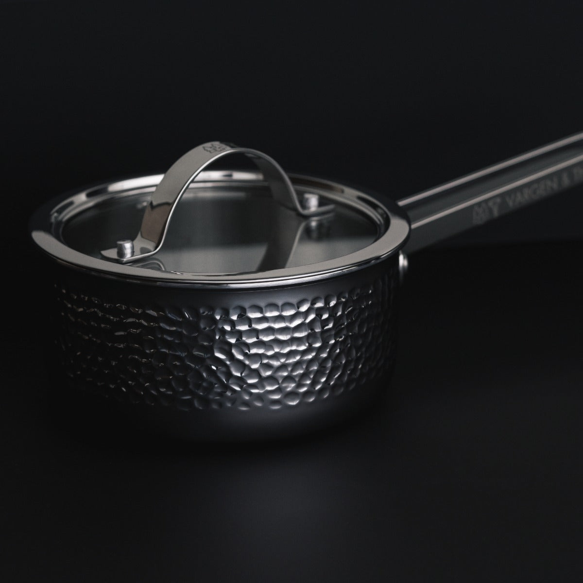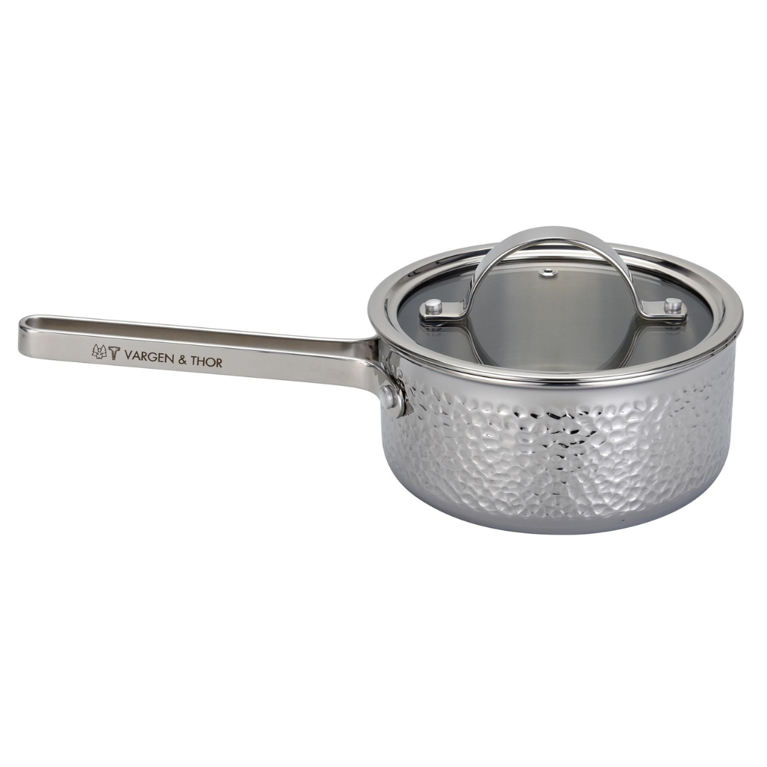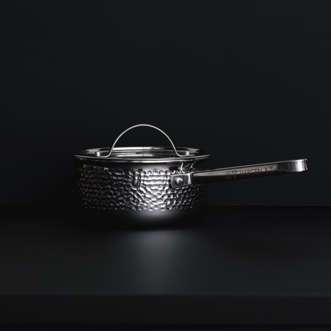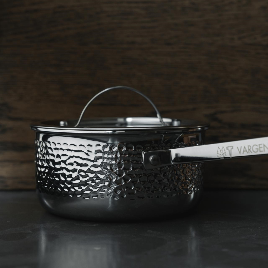 Model TEDDY er en 1 liters (1,6 til kanten) gryde fra Vargen & Thor med en hamret overflade i rent rustfrit stål. En mindre gryde, der stilfuldt matcher de andre modeller i KROMA-serien fra Vargen & Thor: PIXEL & Model Mb.