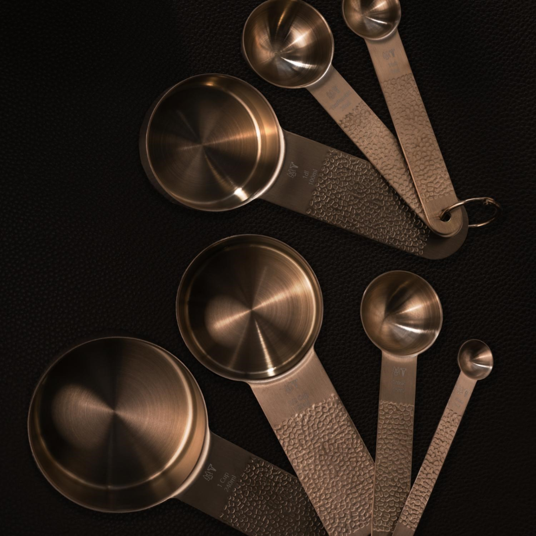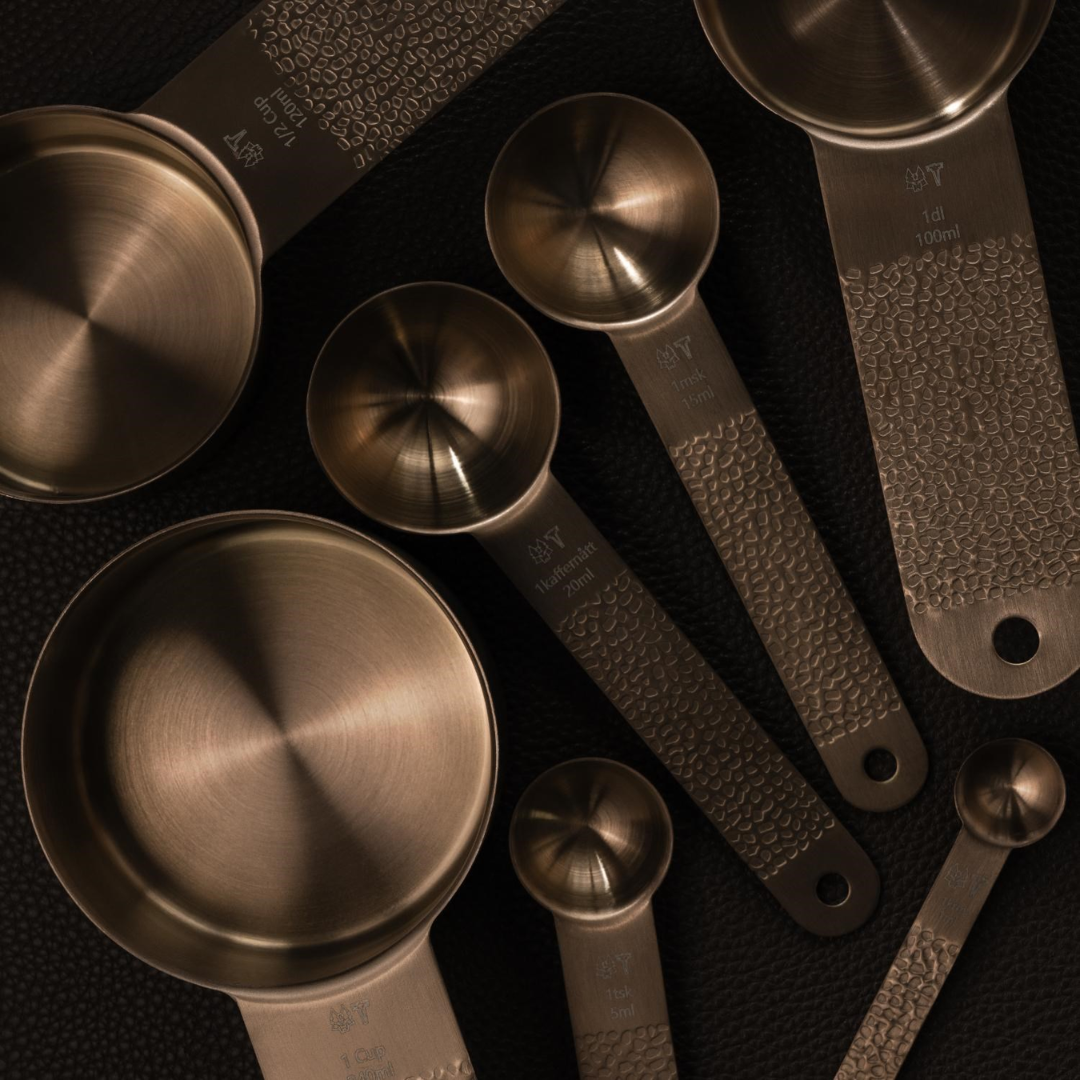 Et længe ventet produkt i FROST-serien. Målesæt i 7 dele + 2 ringe. Et komplet sæt, der også indeholder de ønskede kopmål. Fremstillet udelukkende af sømløst rustfrit stål for lang holdbarhed.
