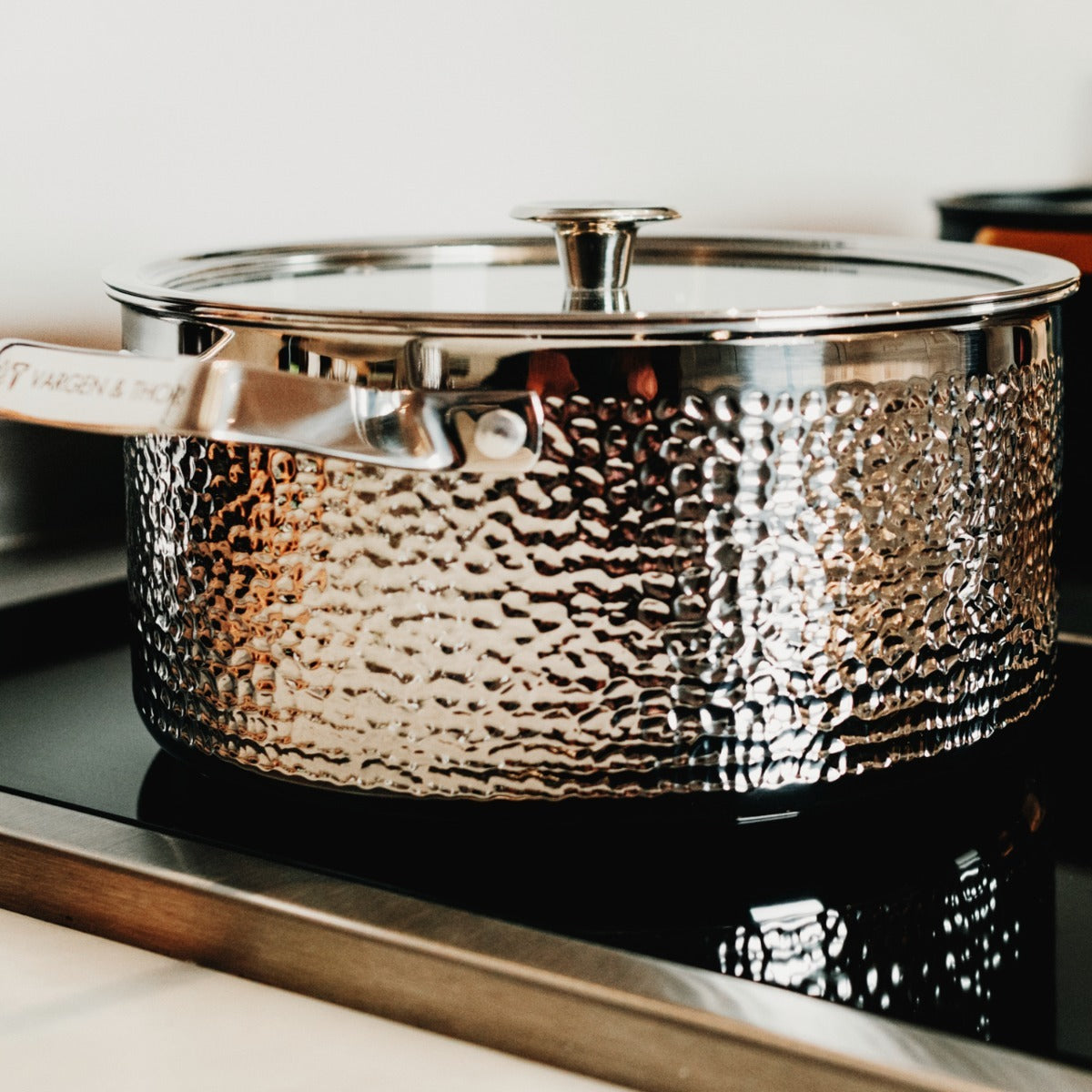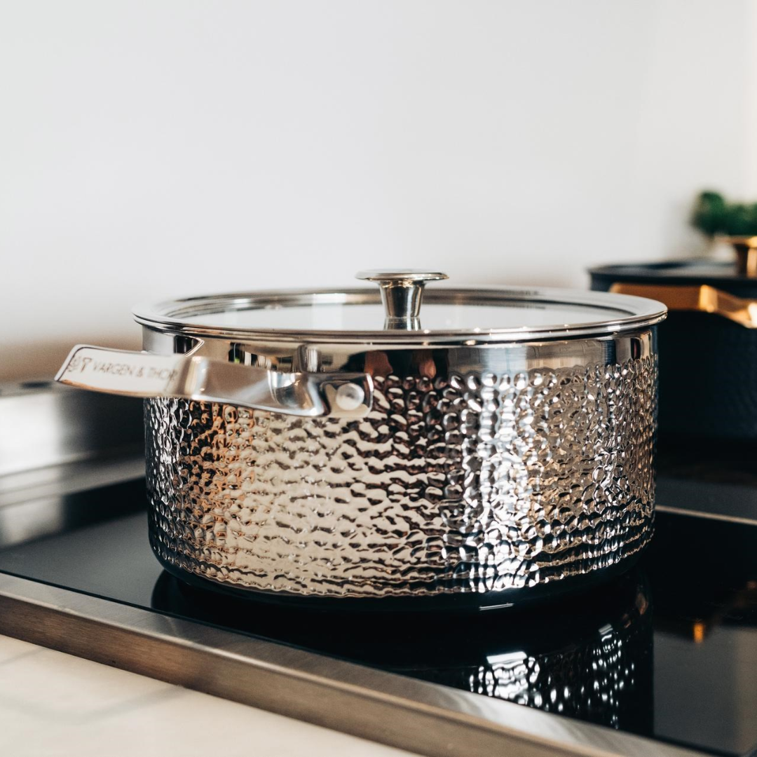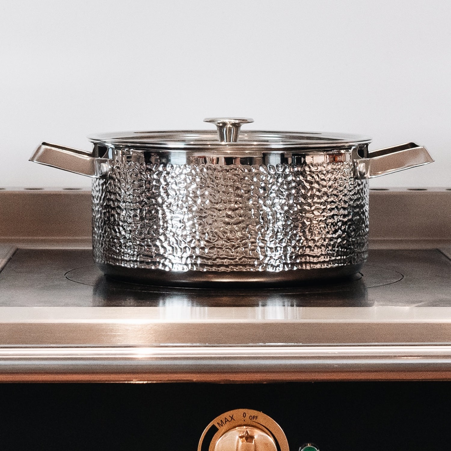 PIXEL er en 4L gryde fra Vargen & Thor med en unik hamret overflade i glitrende rustfrit stål. En gryde i den helt rigtige størrelse, som stilfuldt matcher de andre modeller i KROMA-serien fra Vargen & Thor: Teddy & Model M.