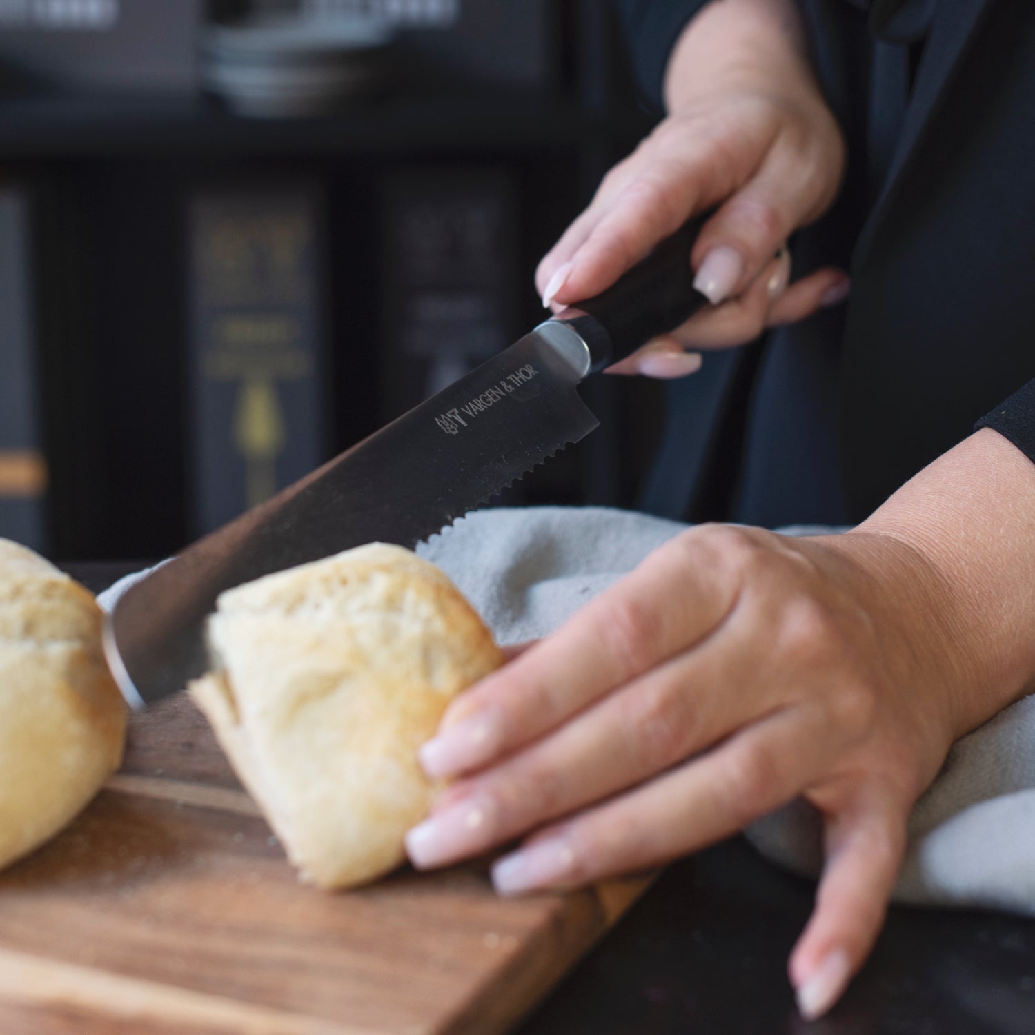 En brødkniv, der skiller sig ud fra mængden. Kokkens foretrukne brødkniv.