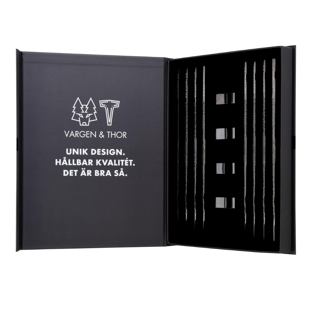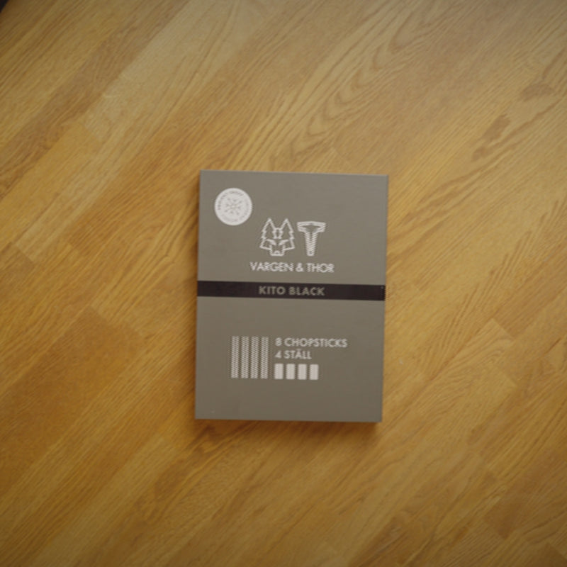 - Indeholder 4 par (8 stk.) spisepinde + 4 holdere i hver æske